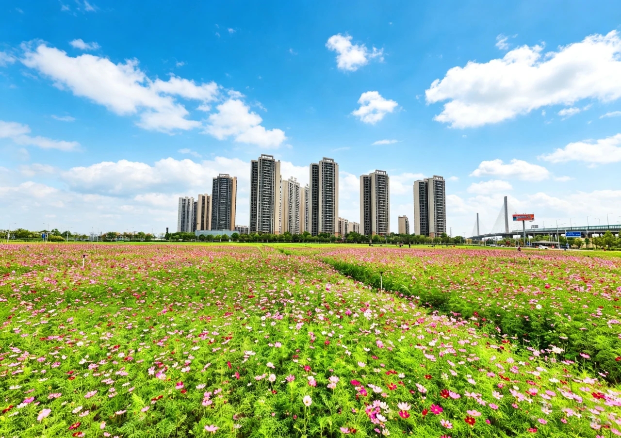 顺德高新区近20亩格桑花海绽放