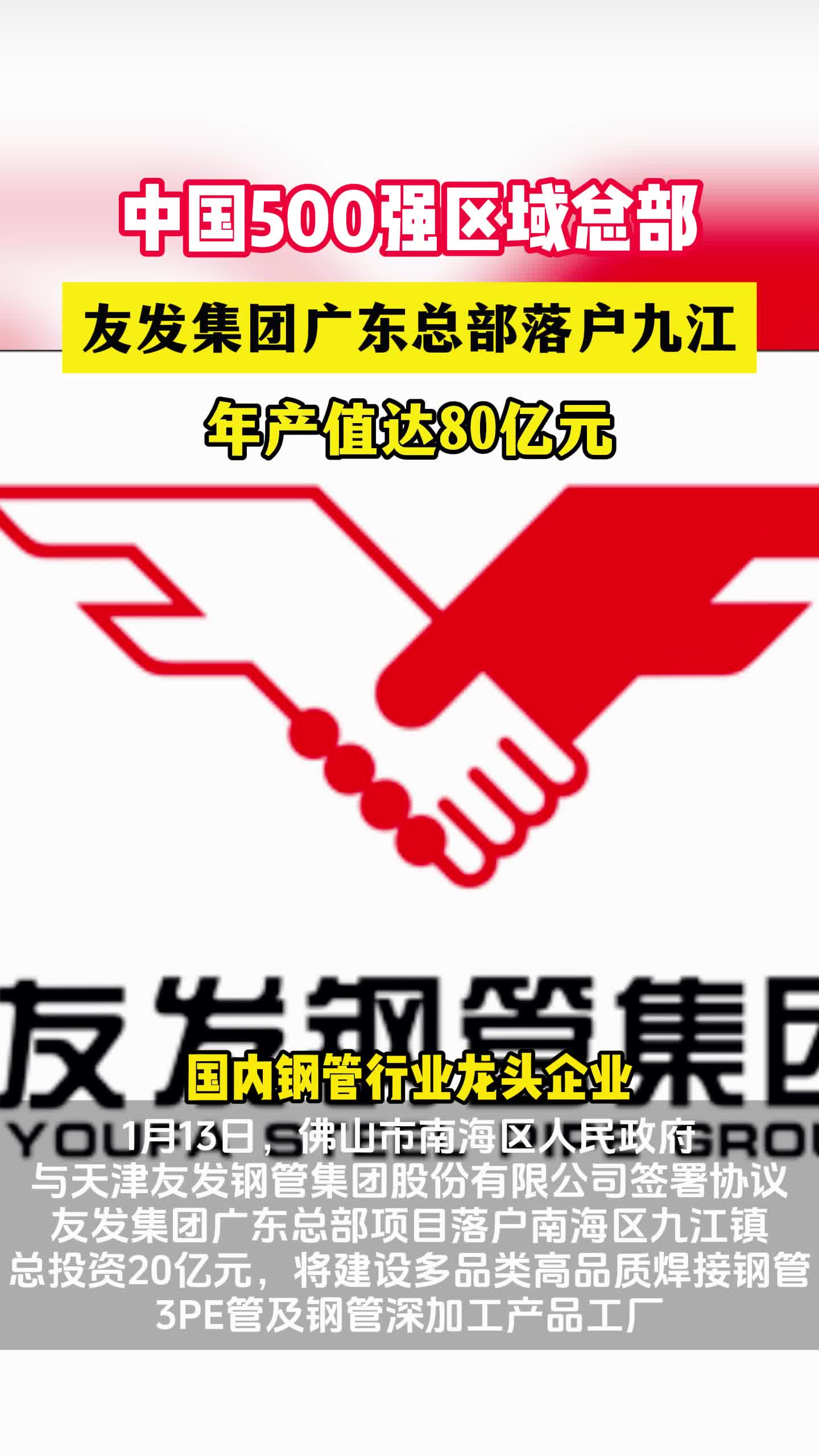 视频 | 500强项目开年首签!总投资20亿元,友发集团广东区域总部落户佛山