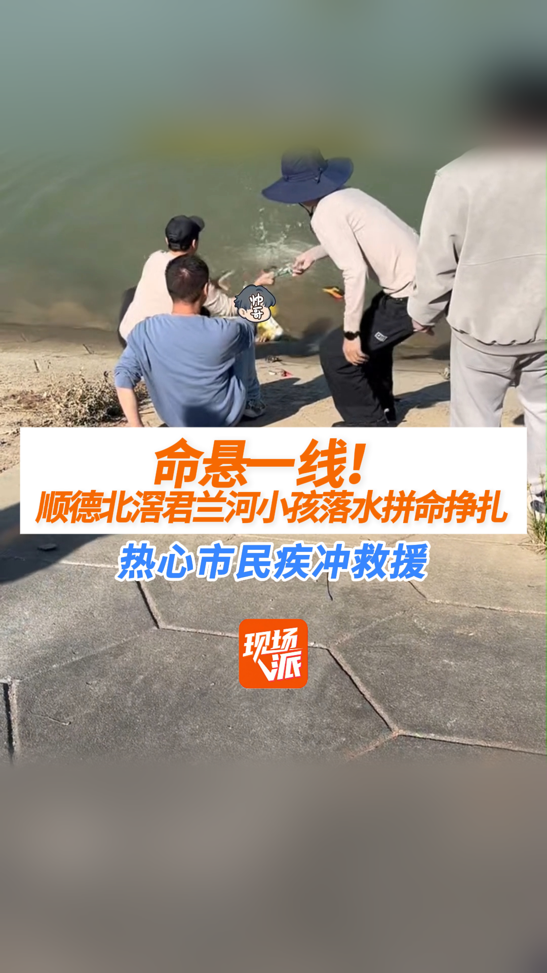 命悬一线!顺德北滘君兰河小孩落水拼命挣扎,热心市民疾冲救援