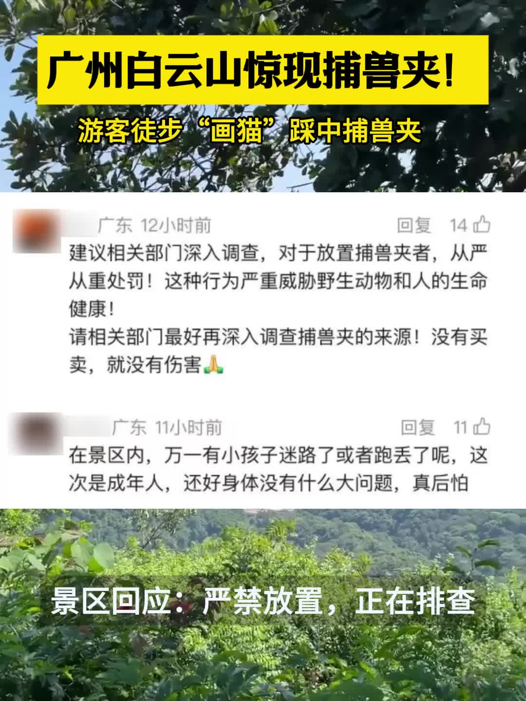 游客白云山徒步“画猫”踩中捕兽夹