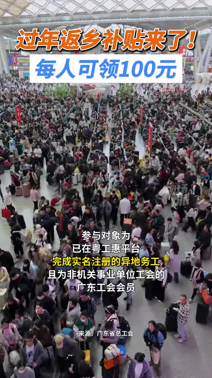 过年返乡补贴来了!每人可领100元