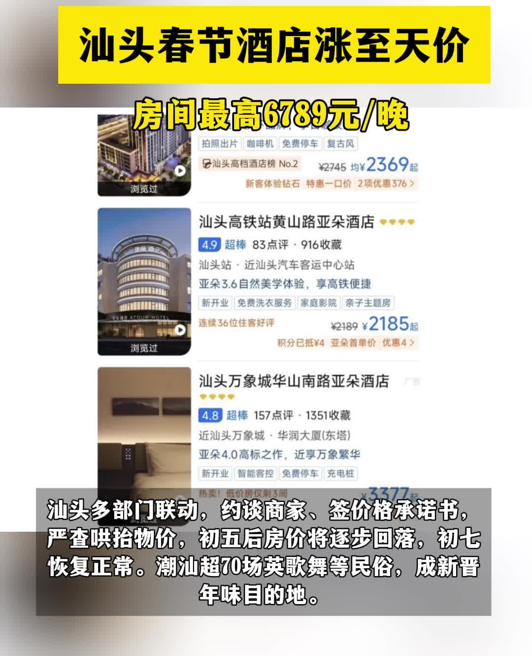 汕头春节酒店涨至天价