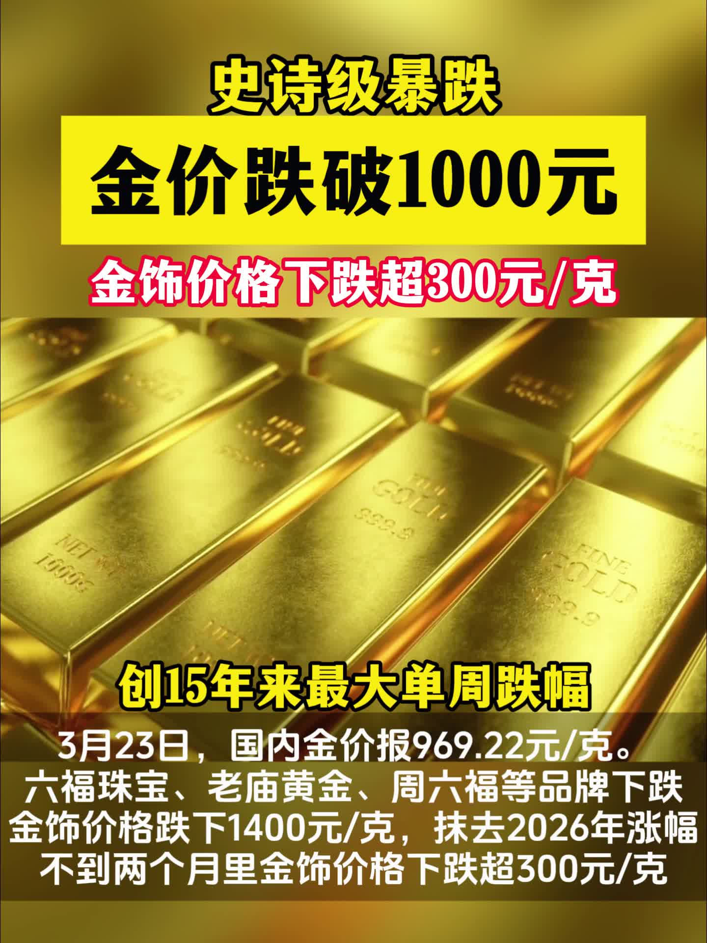 国内金价跌破1000元/克
