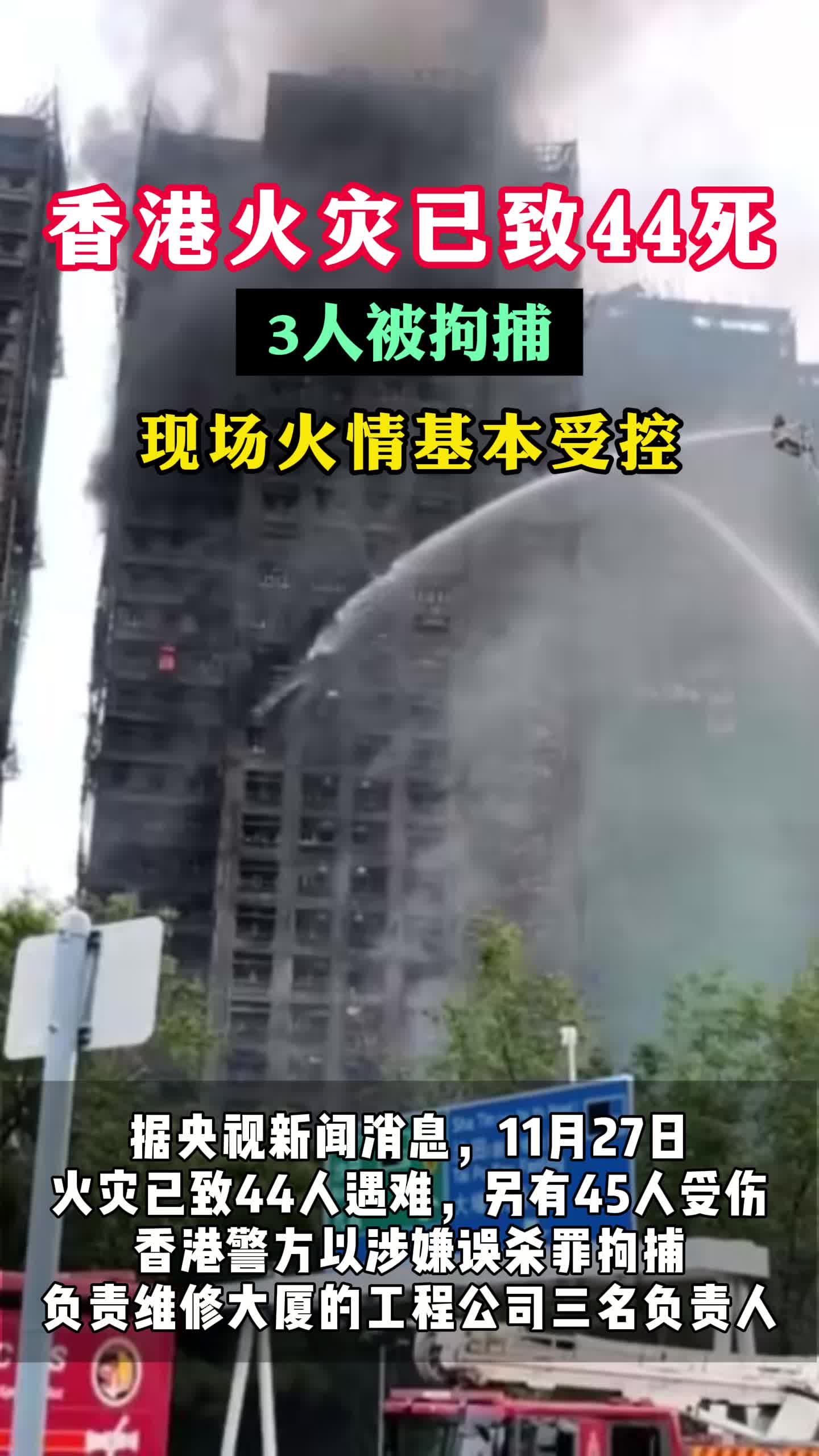 香港火灾已致44人遇难,3人被拘捕