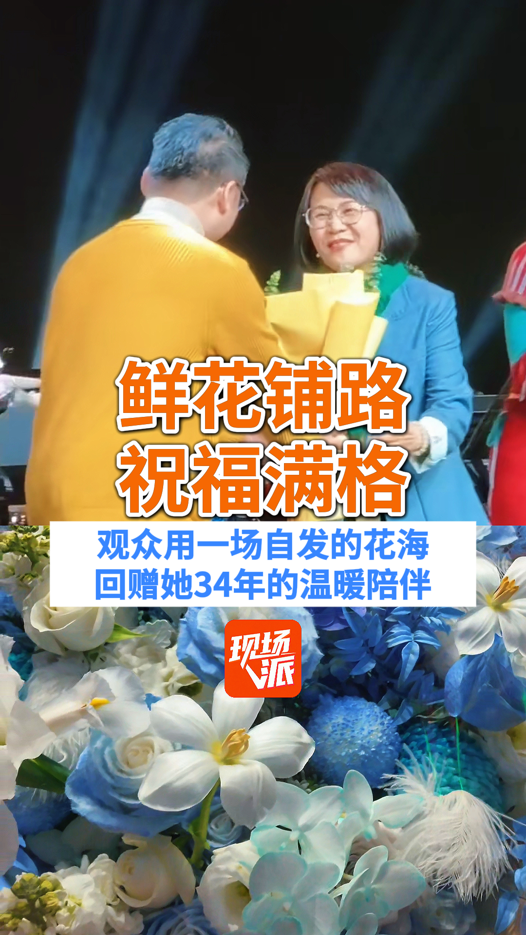 献花铺路,祝福满格!观众用一场自发的花海,回赠她34年温暖陪伴