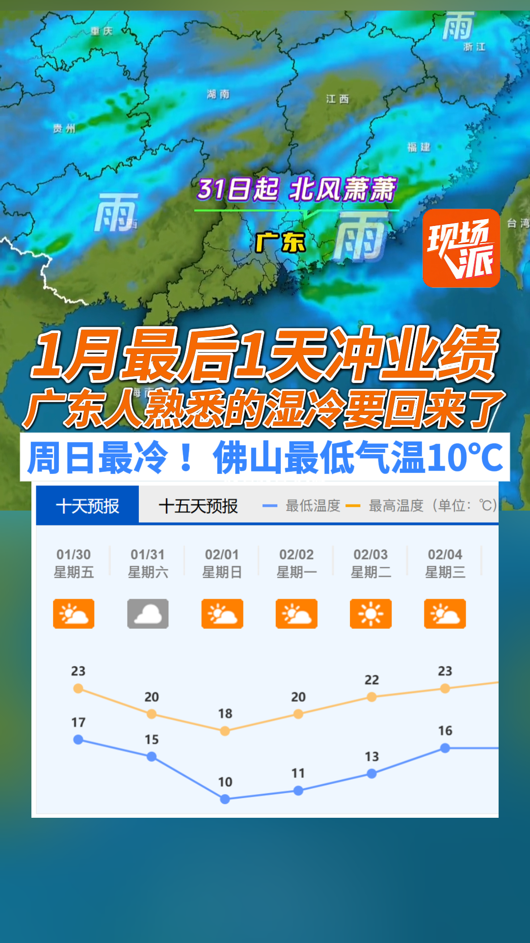 1月最后1天冲业绩 广东人熟悉的湿冷要回来了 周日最冷 !佛山最低气温10℃