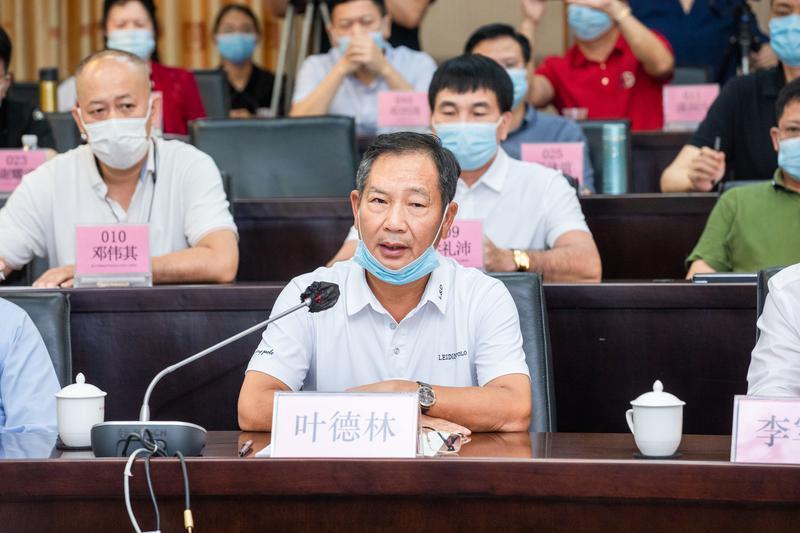 7月30日下午开民营企业领军人才座谈会,佛山市民营企业领军人才培训班学员代表广东新明珠陶瓷集团董事长叶德林 交流发言。/佛山日报记者符诗贺 实习生刘锦煜摄