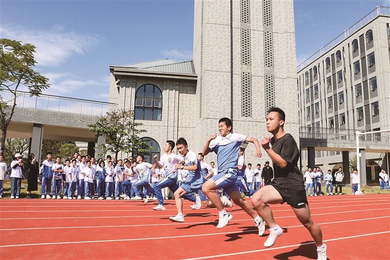 高明通过扩建西江新城一小,探索华英(高明)学校小学部、初中部分址办学等,不断优化学位供给。图为华英(高明)学校学生在跑步。/资料图