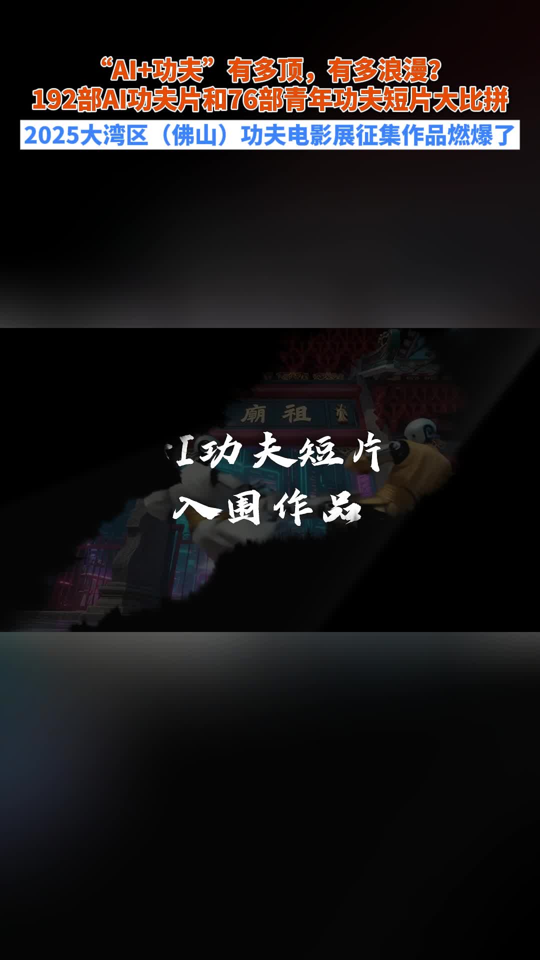 “AI+功夫”有多顶?2025大湾区(佛山)功夫电影展征集作品燃爆了